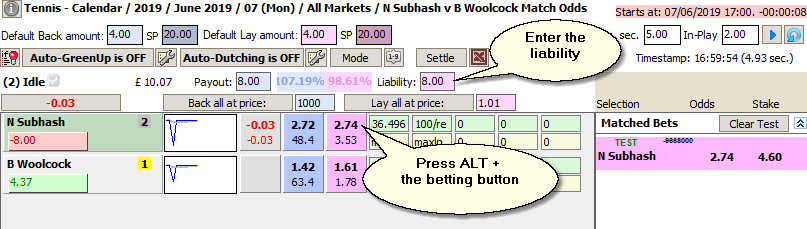 2. How can I place a manual one-click bet with a fixed liability rather than fixed size?