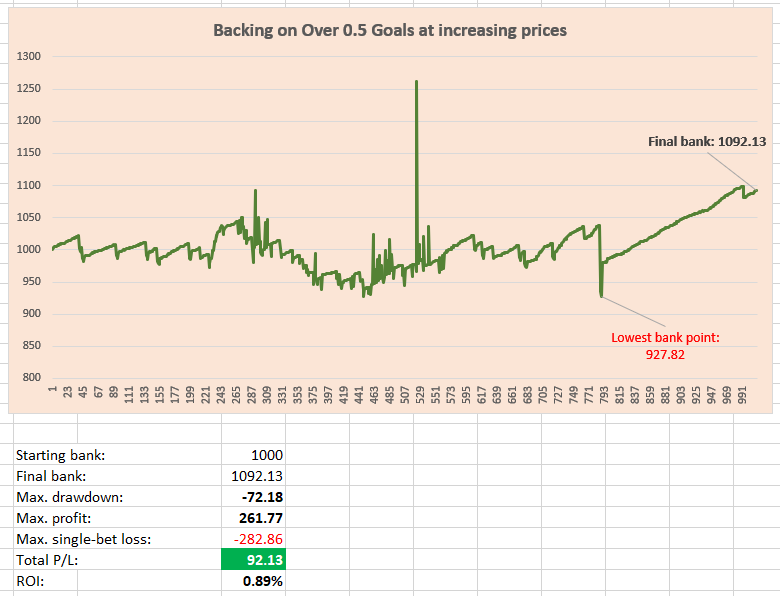 Backing on Over 0.5 Goals at increasing prices